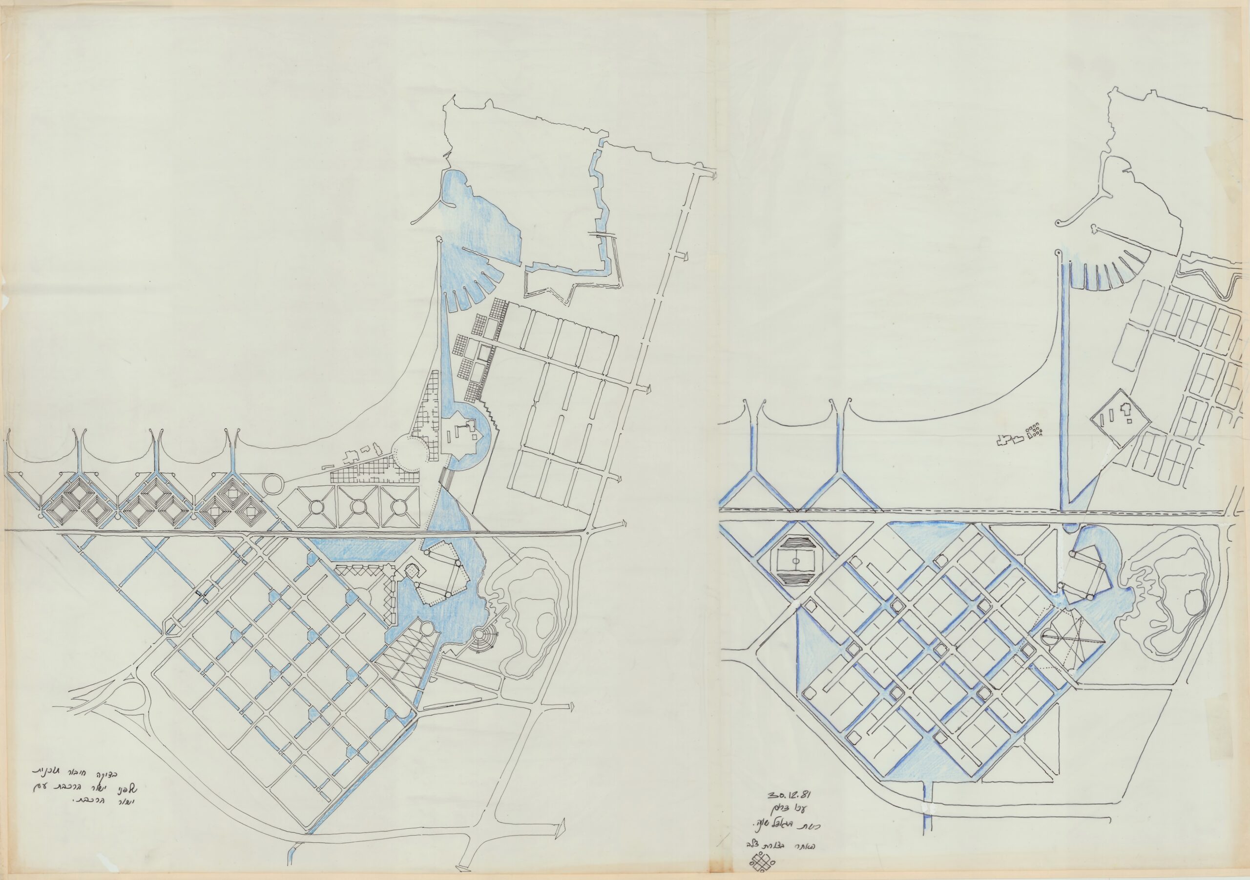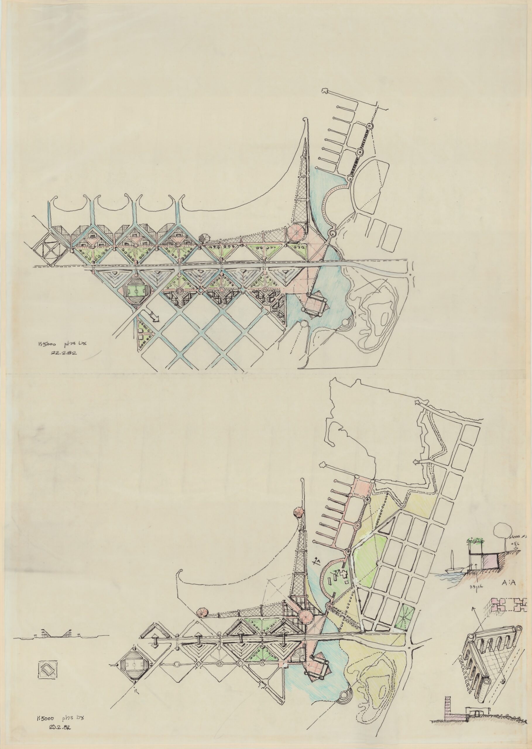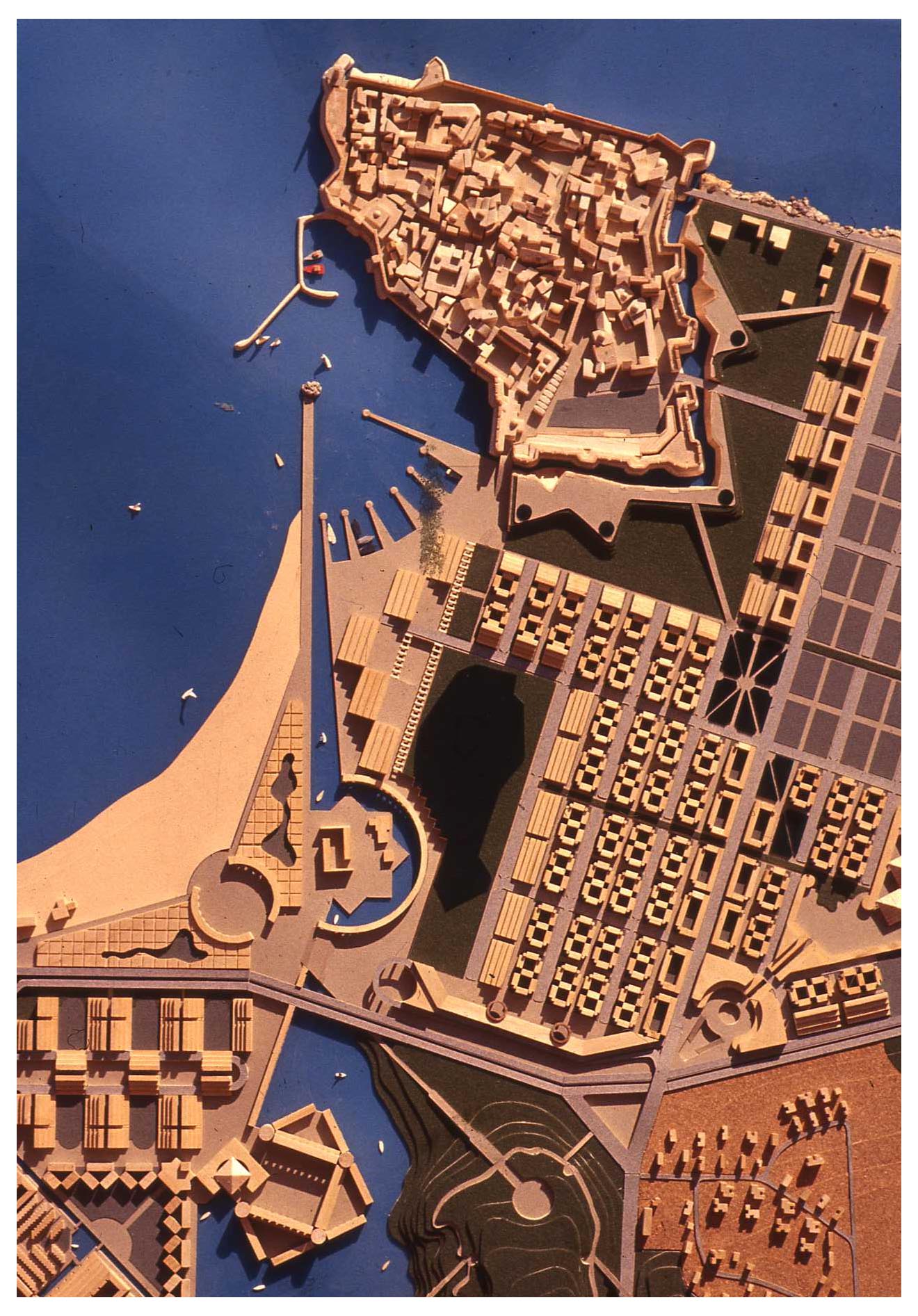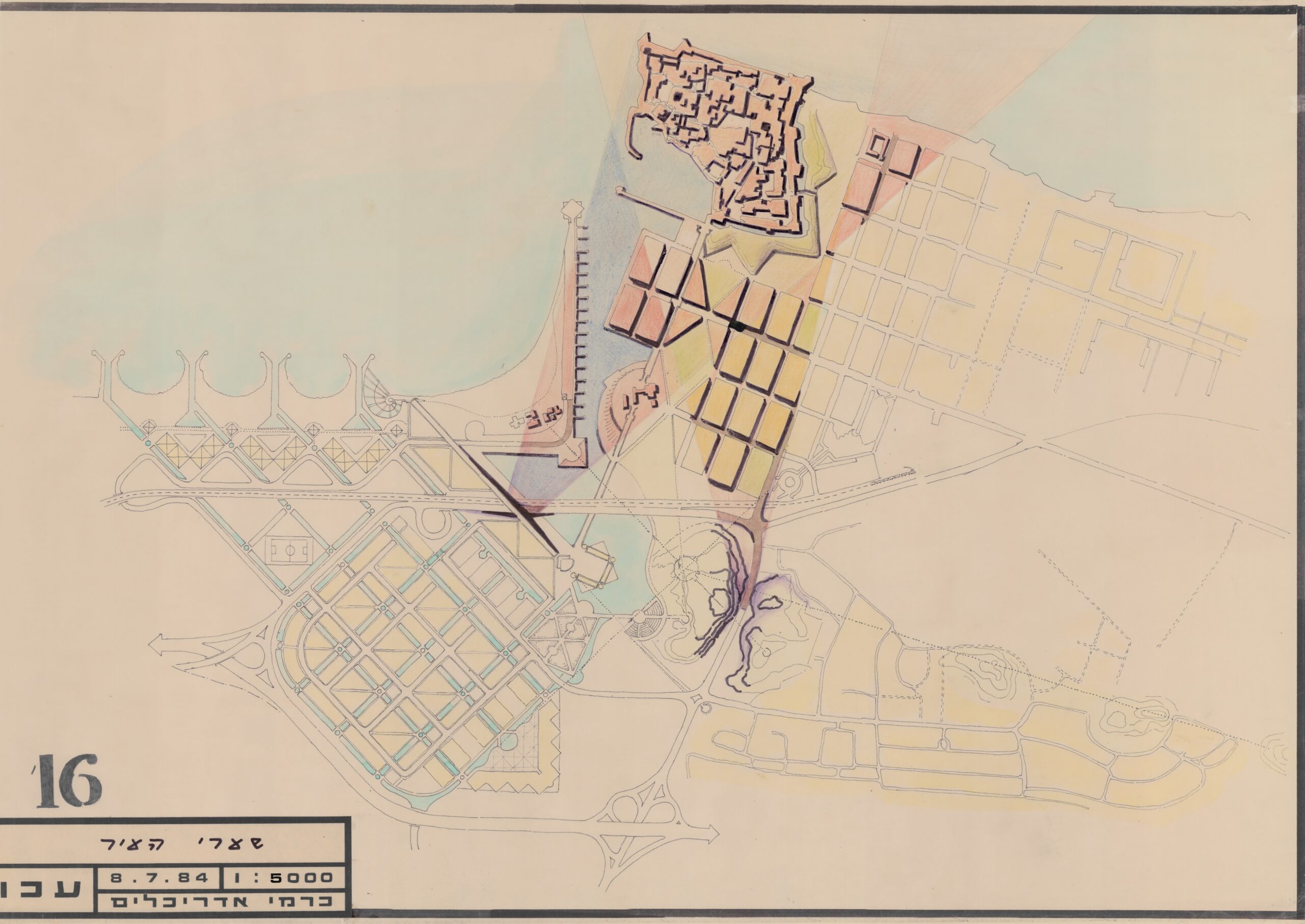 בשנת 1982 החל רם כרמי לגבש, בהזמנת מִִנהל מקרקעי ישראל ומשרד השיכון, תוכנית־אב כוללת לעיר עכו, בשיתוף עם האדריכל והמתכנן יגאל צמיר. בהתבסס על ההיסטוריה רבת־השכבות של עכו, ביקש כרמי לאחד את המרקמים העירוניים שהתפתחו בה לאורך הדורות: העיר העתיקה הצלבנית והמוסלמית התחומה בחומות, העיר המנדטורית הערוכה בגריד אורתוגונלי, והעיר הישראלית שהתפתחה מאז קום המדינה עד ראשית שנות ה־80.