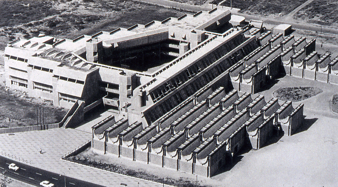 על תכנון הבניין הופקד רם כרמי, בשיתוף עם עדה כרמי־מלמד, חיים קצף ובן פלג. כרמי ארגן את שלושת מרכיבי בית הספר – כיתות הלימוד, סדנאות המלאכה ואולמות ההרצאות (והספרייה) – סביב חצר פנימית מרכזית. חיי הקהילה בבית הספר היו חשובים בעיניו לא פחות מהלימודים עצמם, ולשם כך ביקש לעצב סביבה המעודדת מפגש בין התלמידים גם בהפסקות. הכיכר המרכזית של העיר סיינה שבאיטליה, פיאצה דל־קמפו, שימשה לו מקור השראה בעיצוב החצר.